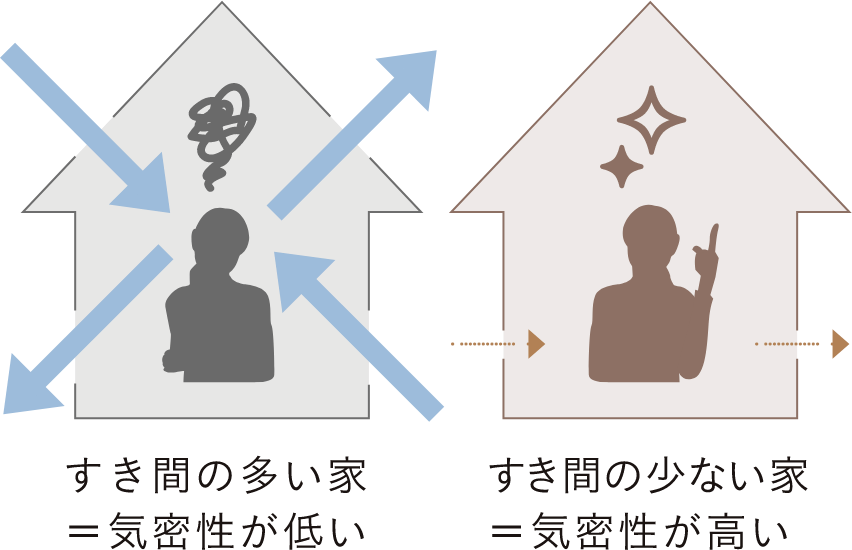 すき間の多い家は、冷たい外気が入り込み、特に冬は寒さを感じやすくなります。