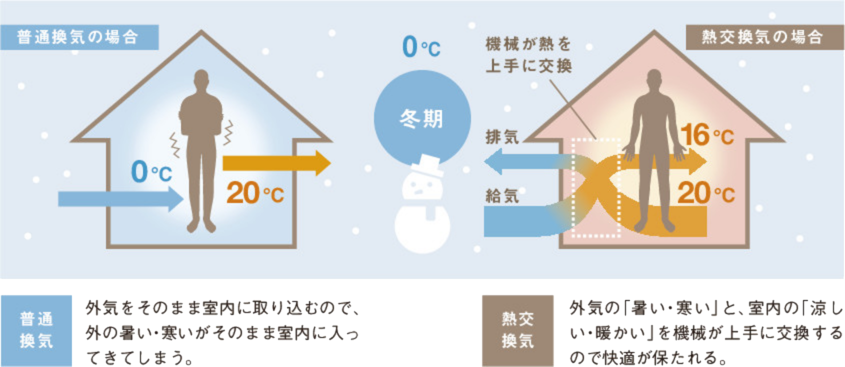 室内の暖かさや涼しさを保ちながら空気を入れ替え、快適な室温ときれいな空気を同時に実現します。