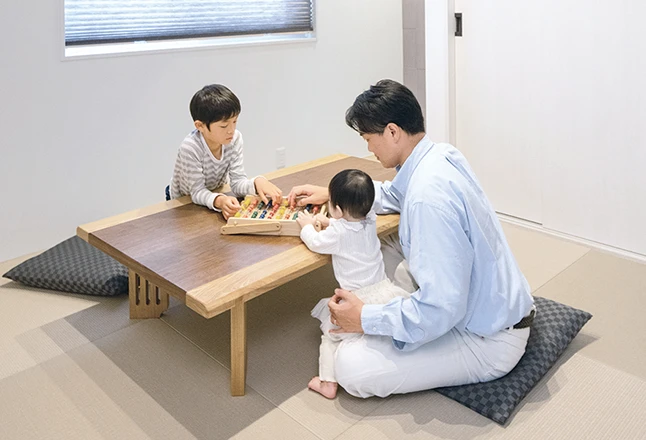家族のコミュニケーションが自然に生まれるLDKには、タタミコーナーを配置。