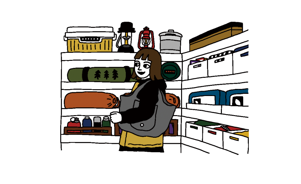 玄関まわりで、買い物帰りの食材や日用品、キャンプ道具までサッと保管。季節用品なども、いつでも取り出しやすい便利なストックスペースです。