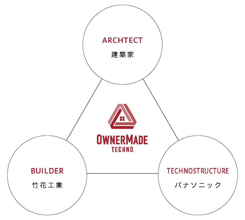 ビルダーと建築家がチームを組み、パナソニックのテクノストラクチャーをベースに施主の理想に応える「オーナーメイド・テクノ」。地域に合わせた知識と自由なデザイン力で、高性能と美しさ、コストバランスを両立した最適な住まいを実現します。
