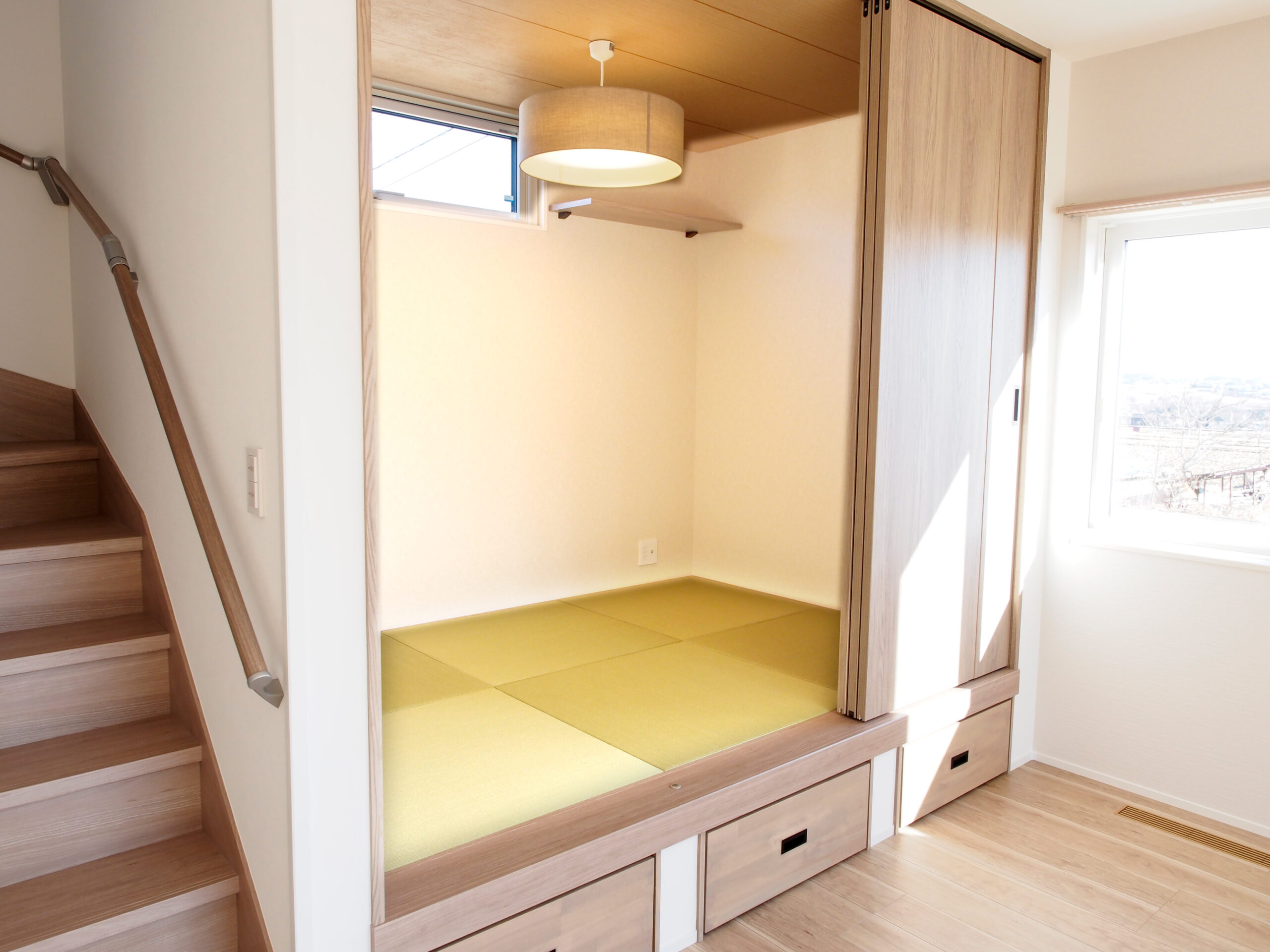 吹き抜けリビングと、くつろぎの和室